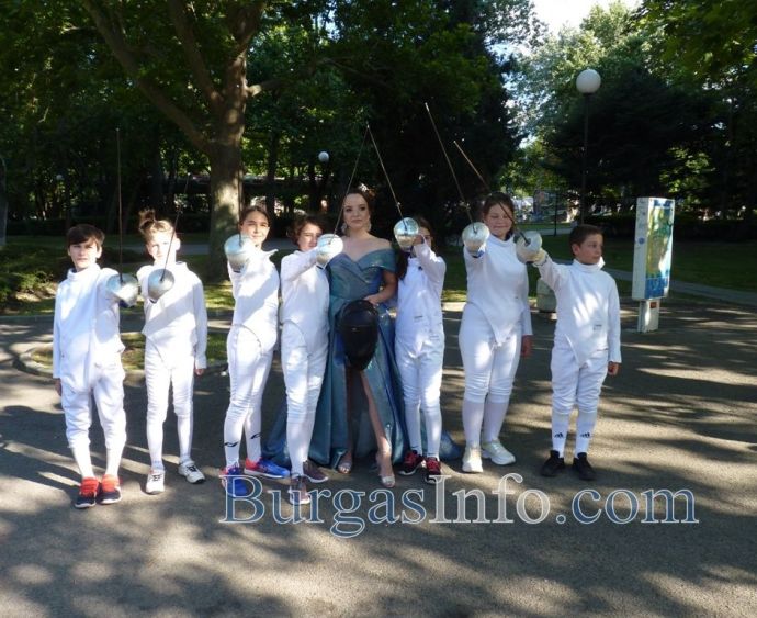 Талантливият треньор от клуб по фетовка Корсар Антония Сарафова блестеше в нежна рокля и обрадена от саби.
