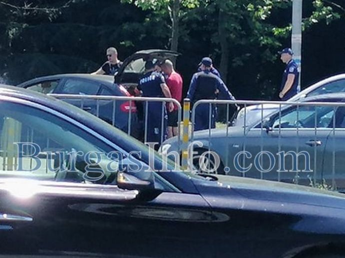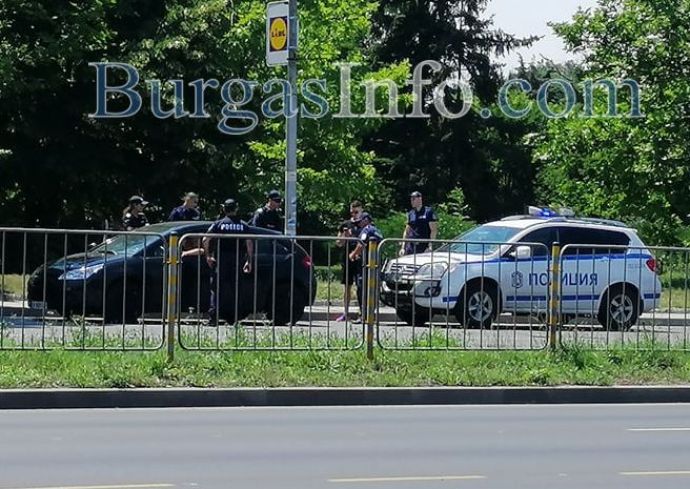 Два полицейски автомобила приклещиха тъмна кола на оживения бул. "Стефан Стамболов", в района след спирката на УМБАЛ-Бургас, в посока центъра на морския град. В автомобила са пътували млади мъже, съобщиха очевиди за БургасИНФО. В момента униформените служители претърсавт багажника. По неофициална и първоначална информация претърсването е заради наркотици. Все още не е ясно какъв е резултатът от акцията.