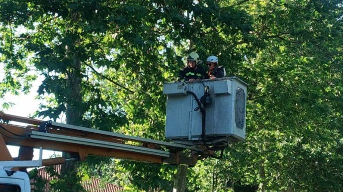 Екип пожарникари свали с подвижна вишка опитната Ани, която заседна с парапланер в клоните на дърво в Бургас. Инцидентът приключи щастливо и с много усмивки пред погледите на десетки минувачи.