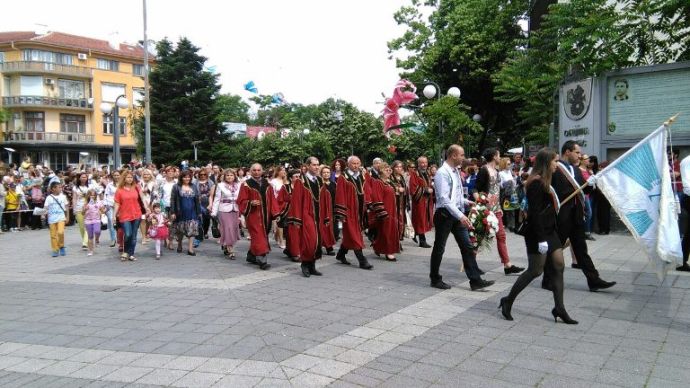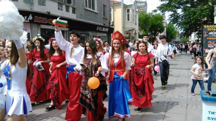 Невиждано шествие за 24-ти май събра 10 000 души по централните бургаски улици, предава репортер на BurgasInfo. Учениците, студентите, малчуганите от детските градини и преподавателите, които участват в него, са 6 000 души, като само зрителите са към 4 000.