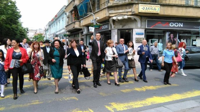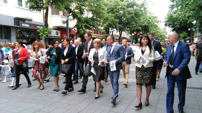 В шествието участват още представители на Регионлания инспекторат по образование, Регионалната библиотека, Кукления театър, писатели, общественици и общински съветници.