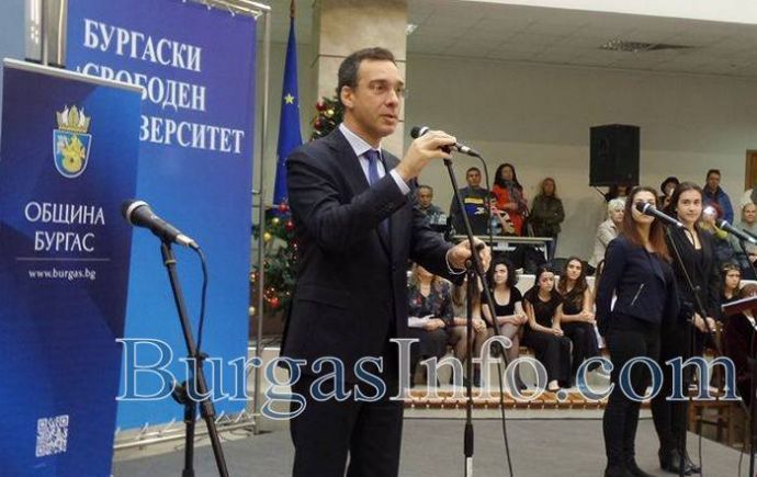 „Ние следим вашите успехи. Голяма част от вас, след като завършат училище, ще следват в различни университети по целия свят, а други – тук, в Бургас. Трябва да знаете, че когато сте учили в този град, сте били част от успехите на образованието в него. Вашите успехи са повод за нас да се гордеем, да се чувстваме част от съвременен и проспериращ град. За да си успешен, да си първи, трябва да отделиш от свободното си време, от това за игри, да се концентрираш в материята, в която се състезаваш. Благодарим на родителите, че ви подкрепят, на директорите и учителите, които се грижат за вас. Ние имаме поводи да се гордеем с нащшите деца“, каза кметът Димитър Николов.