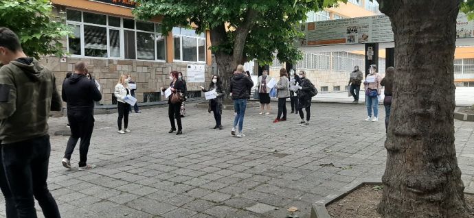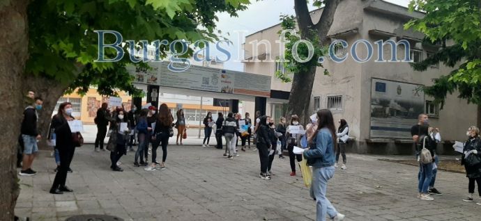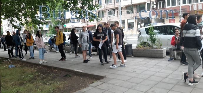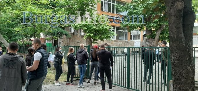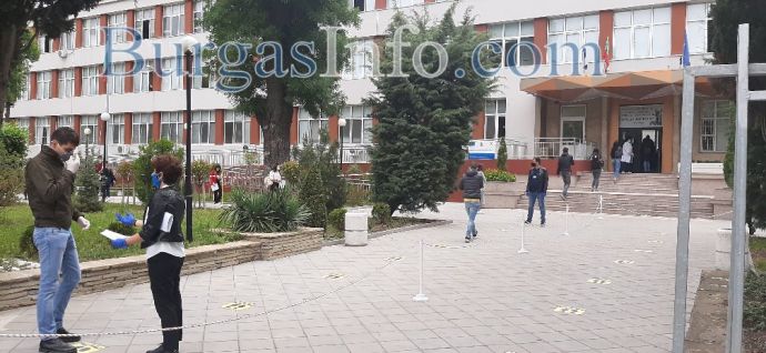 Бургаските зрелостници изпълниха училищните дворове днес за първи път след 3 месеца. Дванадесетокласниците се явяват на матура по български език, а влизането в училище става по строг ред, съобразен със санитарните изисквания. В някои от училикните дворове, като в ПГСАГ „Кольо Фичето“, има поставени знаци, които да обозначават дистанцията, която трябва да спазват младежите, както и определят посоката на движение. В района между ПГМЕЕ, известна като Механото, и Гимназията по туризъм, кипи оживление, тъй като там са концентрирани няколко учебни заведения.