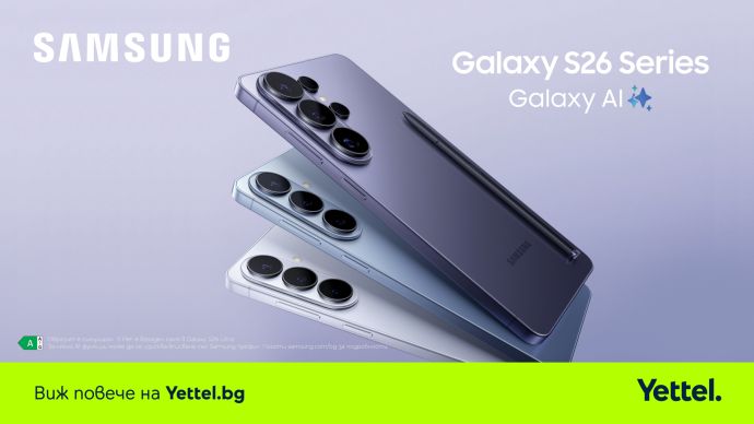 Yettel дава старт на официалните продажби на флагманските модели Samsung Galaxy S26 Ultra, Samsung Galaxy S26+ и Samsung Galaxy S26. Новата серия смартфони, както и безжичните слушалки Samsung Galaxy Buds4 Pro и Samsung Galaxy Buds4 могат да бъдат закупени в цялата търговска мрежа на оператора – онлайн през сайта или директно в мобилното приложение, както и от всеки физически магазин. Телекомът дава различни варианти за покупка на смартфоните – на свободна продажба или в комбинация с планове Total и Total Unlimited, а слушалките могат да се вземат в брой или на лизинг без условие за сключване на договор с план.
