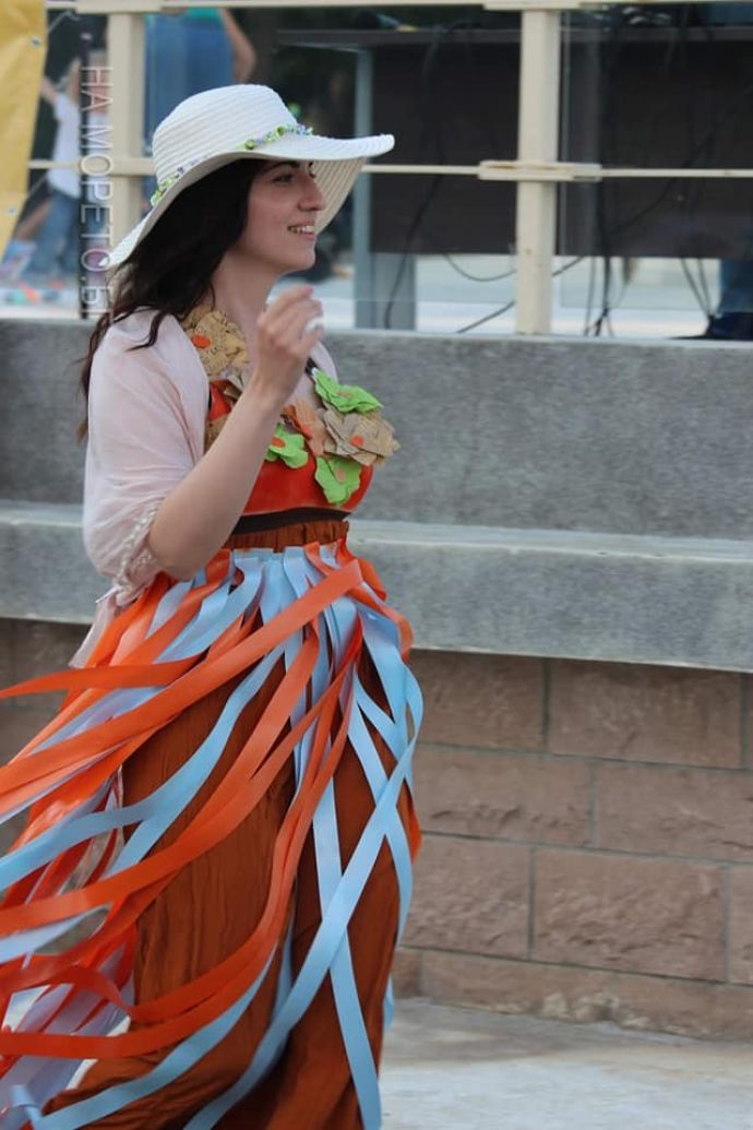 Впечатляващото модно ревю показа дрехи и аксесоари от рециклирани материали - хартия, найлон и метални капачки. "Корона" от електрикави пластмасови чаши създаде истински фурор сред гостите и се превърна в любим аксесоар за снимки и селфита. Чантичка от завързани найлонови торбички събра любопитни погледи, тъй като освен ефектна, е и много лека и удобна.