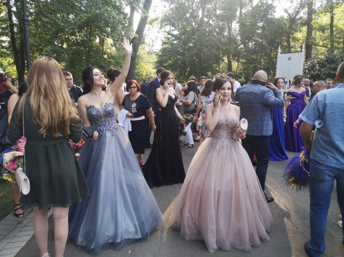Дълги рокли с много дантели и камъни, шлейфове и загадъчно разголени рамене - с това се отличаваха красивите абитуриентки от Руската гимназия в Бургас. Младите дами изглеждаха като истински принцеси - красиви, усмихнати и с много блясък. Тоалетите им тази година бяха в различни цветове, властваха както класическото черно, бордо, зелено и синьо, така и нежните нюанси. Кавалерите също бяха с разнообразен стил. Някои предпочетоха впечатляващи шарени сака, други заложиха на класически официален костюм, а трети бяха подбрали спортно-елегантен стил.