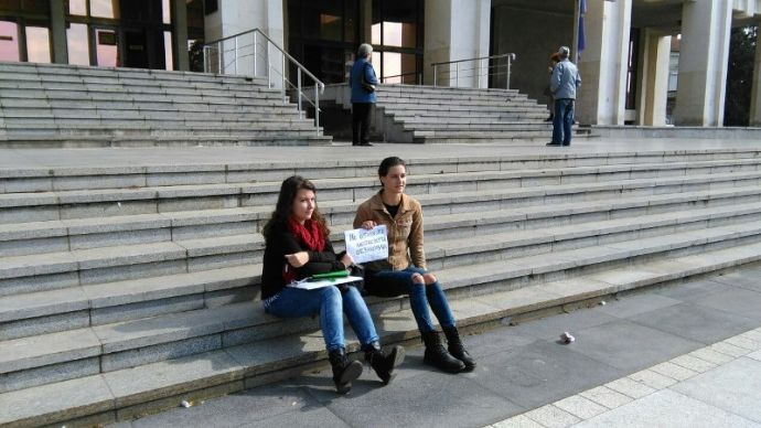 Протестът срещу бургазлията Живко Стоянов, който насъска питбула си срещу беззащитна котка с малки, а след това изкара нож и брутално я изкорми пред магазин „Болера” в к-с „Лазур”, събра десетки възмутени граждани пред Съдебната палата.