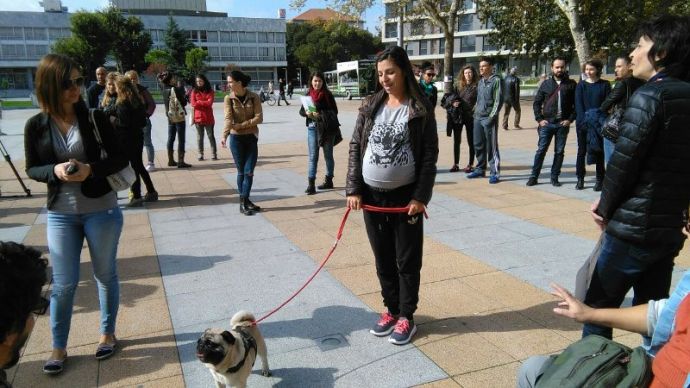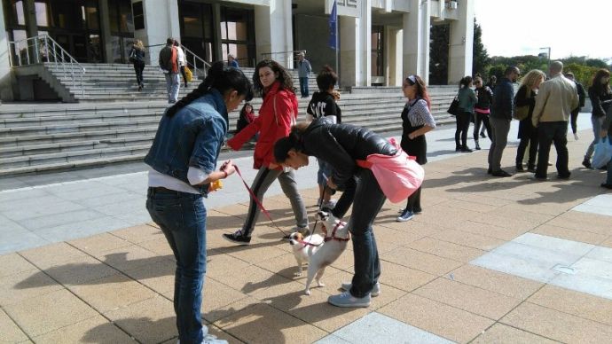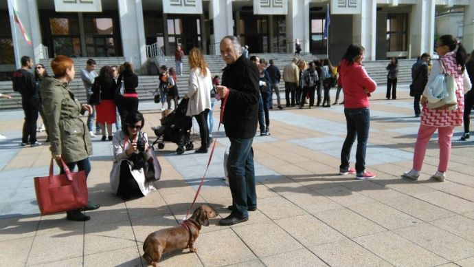 Пред Съда протестиращите с една ръка държат плакати с надписи: „Според закона това е престъпление! Според морала деградиция и садизъм”, „Живко за затвора”, а с другата поводите на многобройните мопсове, чихуахуа, пинчери, дакели, и джак ръсел кучета.