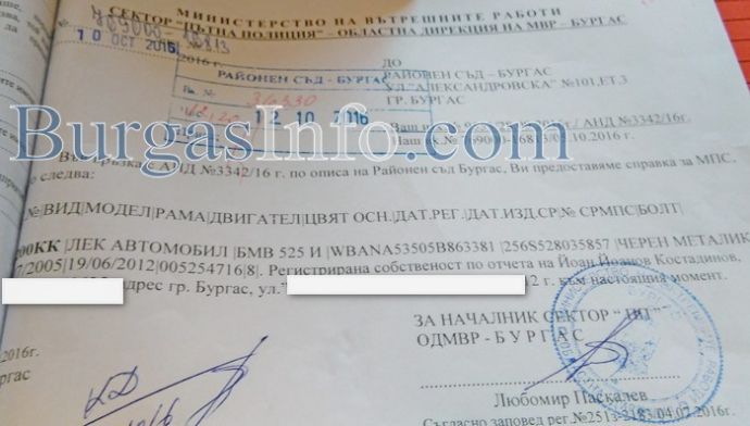 МВР започна вътрешна проверка за пропуски в работата на пътните полицаи в Бургас. Заповедта на директора на Областната дирекция на МВР старши комисар Калоян Калоянов идва след разследване за верижна катастрофа, в протокола, за която не е вписано участието на трети автомобил- марка „БМВ”. Именно тази кола, според юристи, причина за инцидента. Този факт се потвърждава и от двама свидетели, но изненадващо колата не фигурира в акта на пътните полицаи, твърдят юристи, работещи по случая.