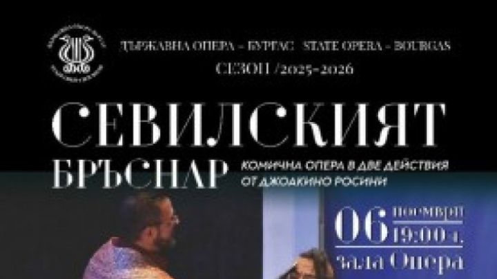 Низ от комични моменти, динамично сценично действие, жизнерадостни емоции, съвременна сатира, поднесена по забавен начин, осезаема артистична спойка на всички на сцената очакват публиката на 6 ноември от 19 часа на сцената на Държавна опера – Бургас в спектакъла на „Севилският бръснар“ от Джоакино Росини. След едногодишно отсъствие от творческия календар, в четвъртък великолепни артисти ще се превъплътят в свежите роли в една от най‐забавните постановки на Бургаската опера – с интелигентно чувство за хумор, личен чар и бликаща енергия. В ролите на кокетката Розина и най-известния бръснар в оперния свят – Фигаро, влизат лауреатите на Международния оперен конкурс „Стоян Попов“ 2025, който приключи през изминалата седмица в залата на Бургаската опера: Мария Юрковская и Андрей Юрковский. Повече от четири години след блестящата премиера /на 8 октомври 2021 г./, новият постановъчен прочит на Росиниевия шедьовър „Севилският бръснар“ по режисура – проф. д-р Александър Текелиев, умело съчетан с оригиналните сценографски и костюмографски решения на Денис Иванов, продължава да е хит – с вечно актуалните теми, шеметни режисьорски прийоми, авангарден облик, вихрено артистично присъствие, щипка еротика и гарантирани усмивки. Осъвременената версия на операта продължава да доказва, че предизвикателството на новия подход се приема с разбиране и е сигурен способ за излизане от зоната на комфорт – за да се разшири кръгозорът и да се обогатят възприятията. За пореден път новата трактовка на Росиниевия шедьовър ще бъде представена – като фурия от комични ситуации, свежа закачка, искрен смях и препратки към съвременната действителност, на бургаска сцена. С всяко представление постановката се обогатява, артистите добавят нови психологически нюанси към образите. Едно е непроменяемо – всички играят с видимо удоволствие и се забавляват със закачливия сюжет с елементи на социална сатира. Артистите съумяват да изградят цялостен театрален образ на представлението, добавяйки към блестящото вокално изпълнение усет към всички идеи, вложени в постановъчните решения на проф. Текелиев. "Севилският бръснар" на бургаска сцена е не само опера – в класическия й вид – макар че нищо от музикалната партитура на Росини не е променено, се получава чудесен комплексен спектакъл, носещ не само бурен смях, но и редица послания в съвременния житейски контекст. Под вихрената палка на големия български диригент с впечатляваща международна кариера Иван Кожухаров, на 6 ноември излизат блестящи артисти. Баритонът Андрей Юрковский, носител на трета награда от Международния оперен конкурс „Стоян Попов“, дебютира блестящо в ролята на Фигаро по време на спектакъла на 14 юни 2024 г. в залата на Операта, ще влезе отново вихрено в забавното амплоа на именития бръснар, но в стил Елвис Пресли и епохата на рока от 70-те години, и в четвъртък. Очарователното мецосопрано Мария Юрковская, която спечели втора награда в тазгодишния конкирс „Стоян Попов“, също направи забележителен дебют в ролята на Розина през м. юни 2024 г., за пореден път ще влезе в образа на закачливата кокетка. Двамата солисти, които са партньори не само на сцената, но и в живота, пресъздават комичните образи с майсторство, отдаденост и неподправена харизма. Николай Моцов /гост/, лирико-спинтов тенор, професор в Национ