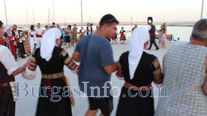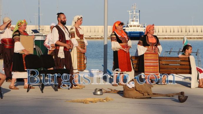 Над 30 танцьори на всякакви възрасти претвориха обичаи, свързани със създаването на хляба сред луксозните яхти на пристанището в Сарафово. Те са от танцова формация "Партньори" - Кюстендил, а спектакълът се нарича „Земята, вселената и небето". Кюстендилци са пристигнали специално, за да подкрепят читалището в Сарафово "Ангел Димитров - 1929", което за пръв от десетилетия организира тридневни културни празници.