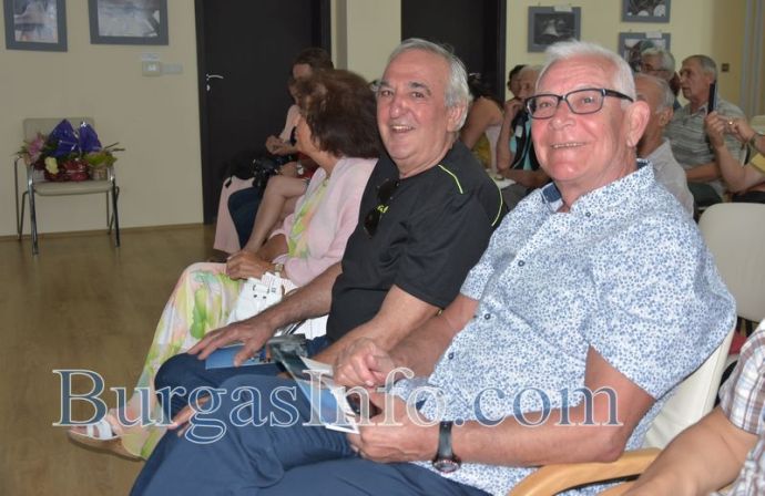 Капитан Попов (с черната тениска) на премиерата на книгата в "Морско казино"