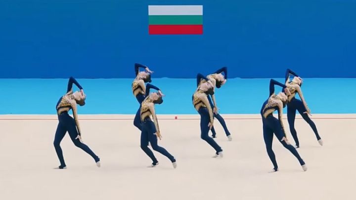 Карина Нейкова, Сияна Табакова, Христиана Ковачева, Виктория Берова, Яна Стайкова, Мария Мехлемова и Катрин Тасева, водени от треньора Кристина Ташева, събраха общо 58.700 точки – 29.250 в първия ден и 29.450 във финала. Българският състав беше безапелационен и остави зад себе си тима на Мадона (неутрален статут) с 56.800 точки и финландския Минетит, който раздели третото място с Експресия (неутрален статут) с по 56.650 точки, съобщава БТА.