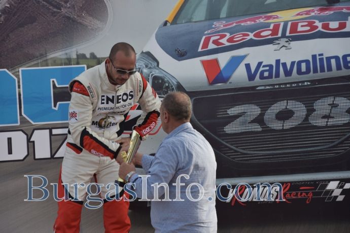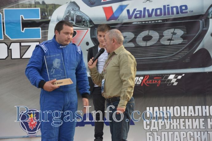 Защитаващият титлата си от 2015 и 2016г. Камбуров се движеше на първо място в състезанието, когато няколко обиколки преди края на надпреварата, автомобилът Mitsubishi Lancer Evo IX, който управлява получи повреда и той спря на трасето.