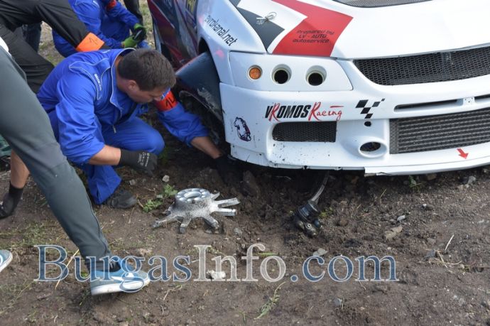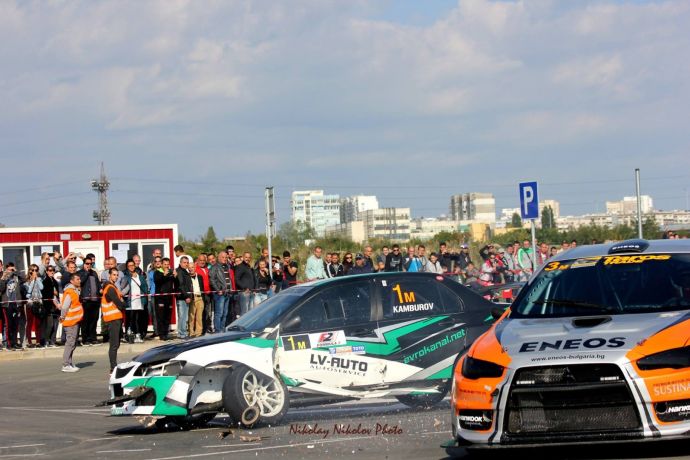 Още в първия ден на тренировките най-сериозните кандидати в клас "Макси" пилотите Камбуров и Маршавелов, се блъснаха по време на квалификациите за определяне на стартовата решетка. Спортните автомобили пострадаха изключително сериозно и участието на състезателите бе компроментирано и държа в напрежение феновете. Още същата вечер обаче двата автомобила бяха ремонтирани и готови да излязат на старта следващият ден. Снимка: Николай Николов