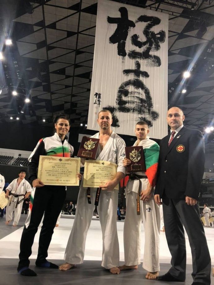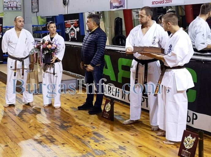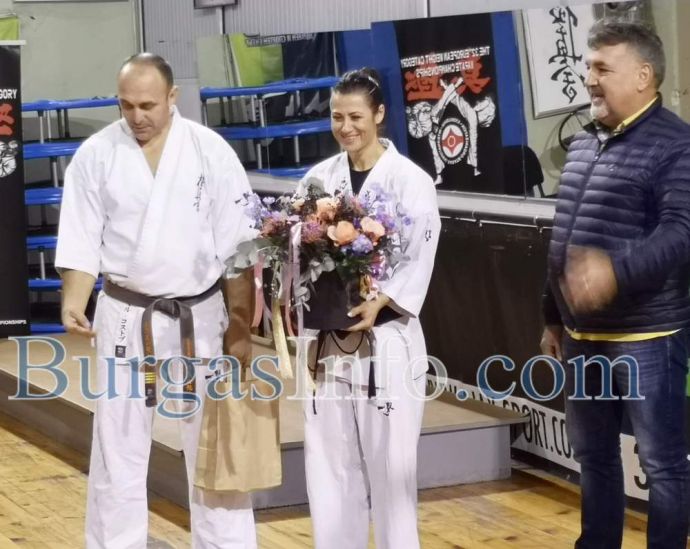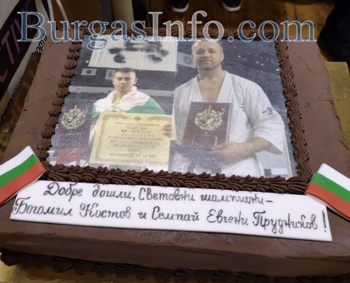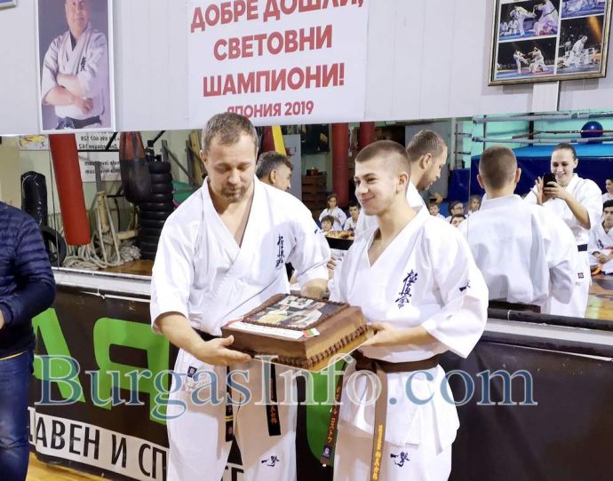 Богомил Костов и Евгени Прудников донесоха новата спортна слава на страната, като станаха шампиони на Първенството за мъже на без-категории по Карате Киокушин и Световно Елитно Първенство за юноши и Ветерани, което се проведе в Токио, Япония. Тази вечер двамата бяха посрещнати с огромно уважение и гордост в спортна зала „Аякс“ в Бургас. Богомил Костов е син на городстта на Бургас в този спорт - Гергана Апостолова, която днес гради нови шампиони. Те бяха посрещнати с цветя, много емоции и пожелания за бъдещи успехи. Родителите на най-малките възпитаници ги изненадаха с торта с изображението на двамата най-добри в света. Емоцията беше изключителна, като на място бяха, както и най-малките възпитаници на Апостолова, така и техните близки - всички заредени с енергия и хъс за бъдещи успехи.